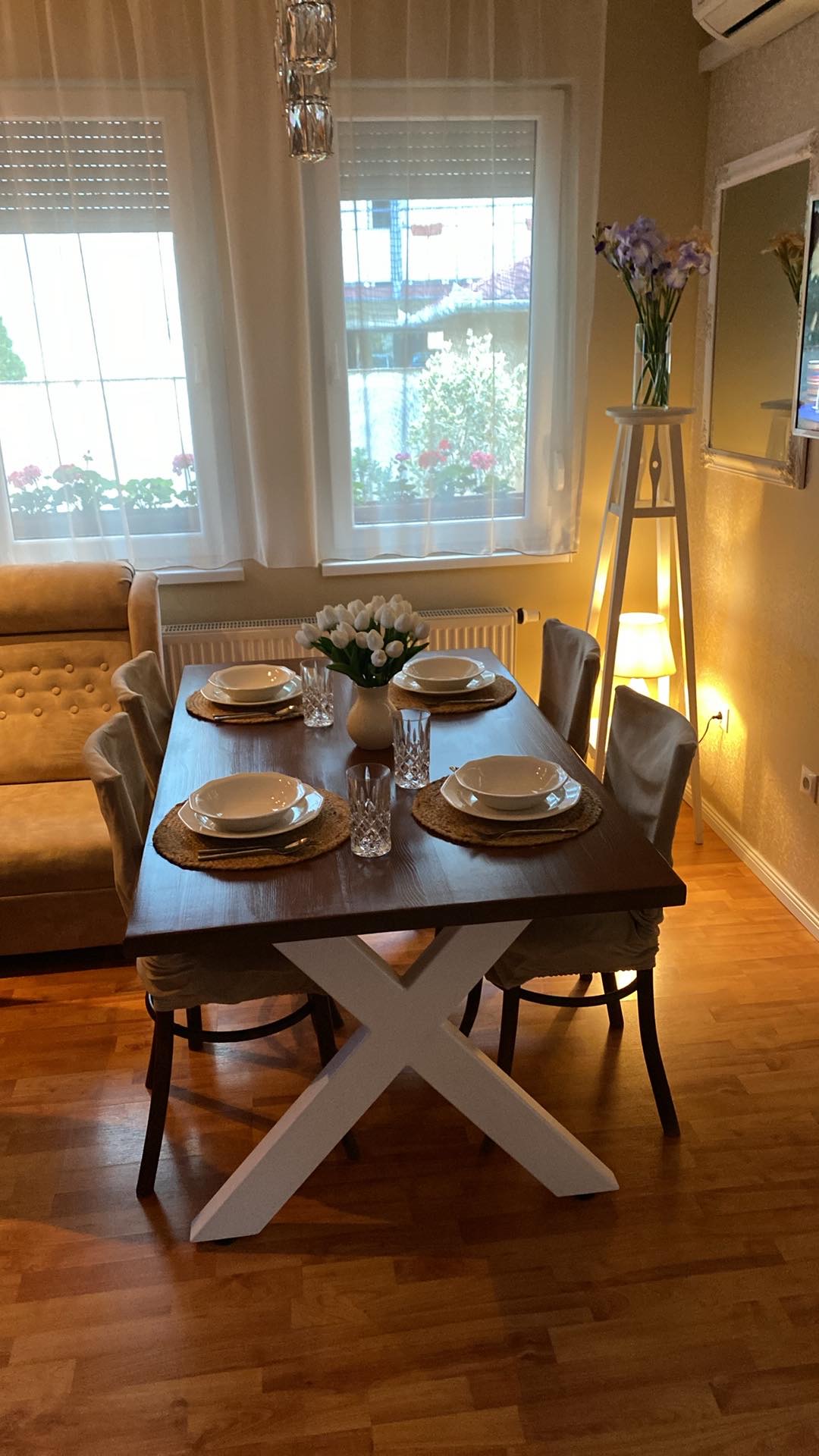 Teremts harmóniát az otthonodban ezzel a csodálatos, kézzel készült fa asztallal, amely a természetesség és az ipari stílus tökéletes ötvözete. Az asztallap meleg, egyedi fa erezete és a modern, masszív fém lábak kontrasztja minden enteriőr középpontjává válik.